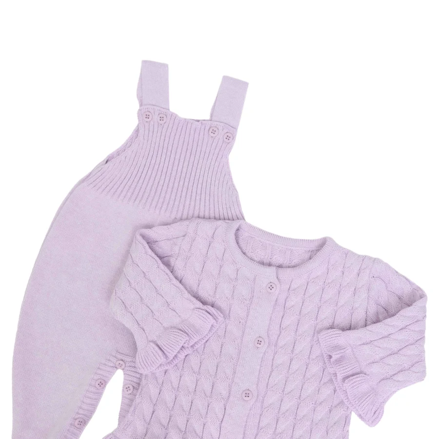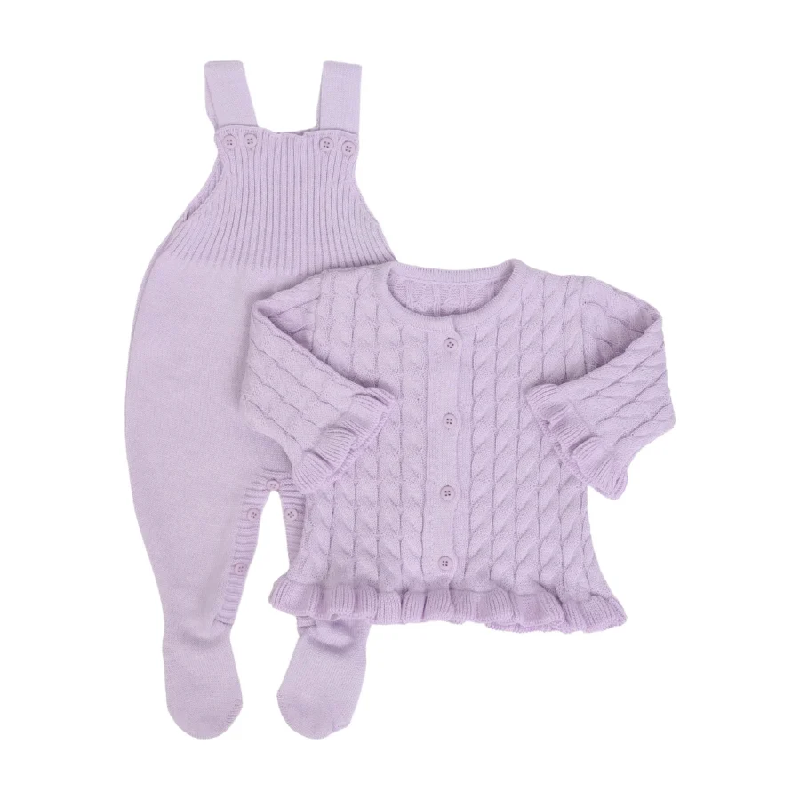 Jardineira e Casaquinho Manu Rosa bebê – 2 peças