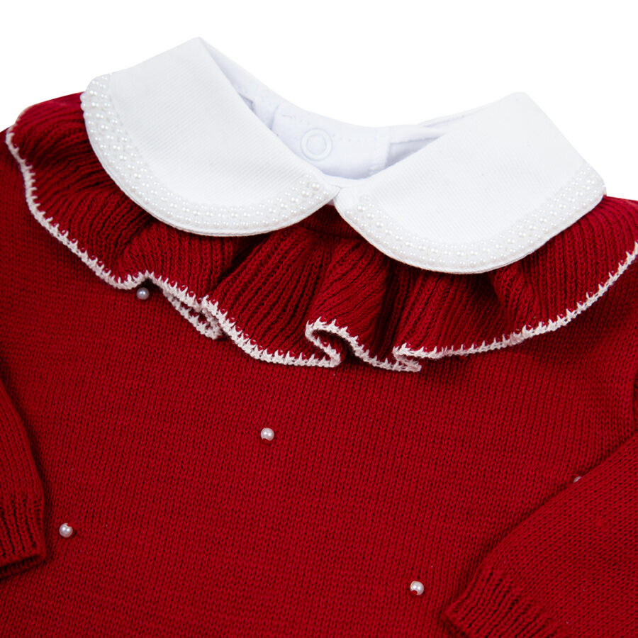 Macacão Babado Vermelho com Body Pérolas – 2 peças