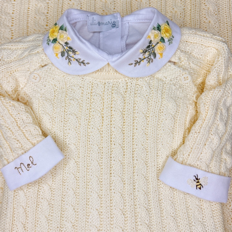 Jardineira e Casaquinho Manu amarelo bebê – 2 peças