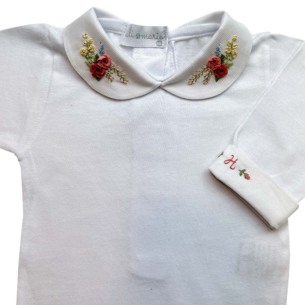 O charme está no bordado feito à mão, cuidadosamente produzido com a inicial da sua bebê no punho. Por ser um trabalho artesanal, pequenas variações de cor e tamanho podem ocorrer, tornando cada peça única.