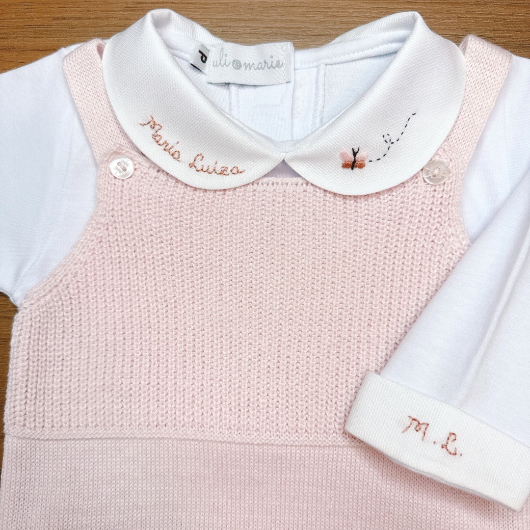Jardineira e Casaquinho Manu Rosa bebê – 2 peças