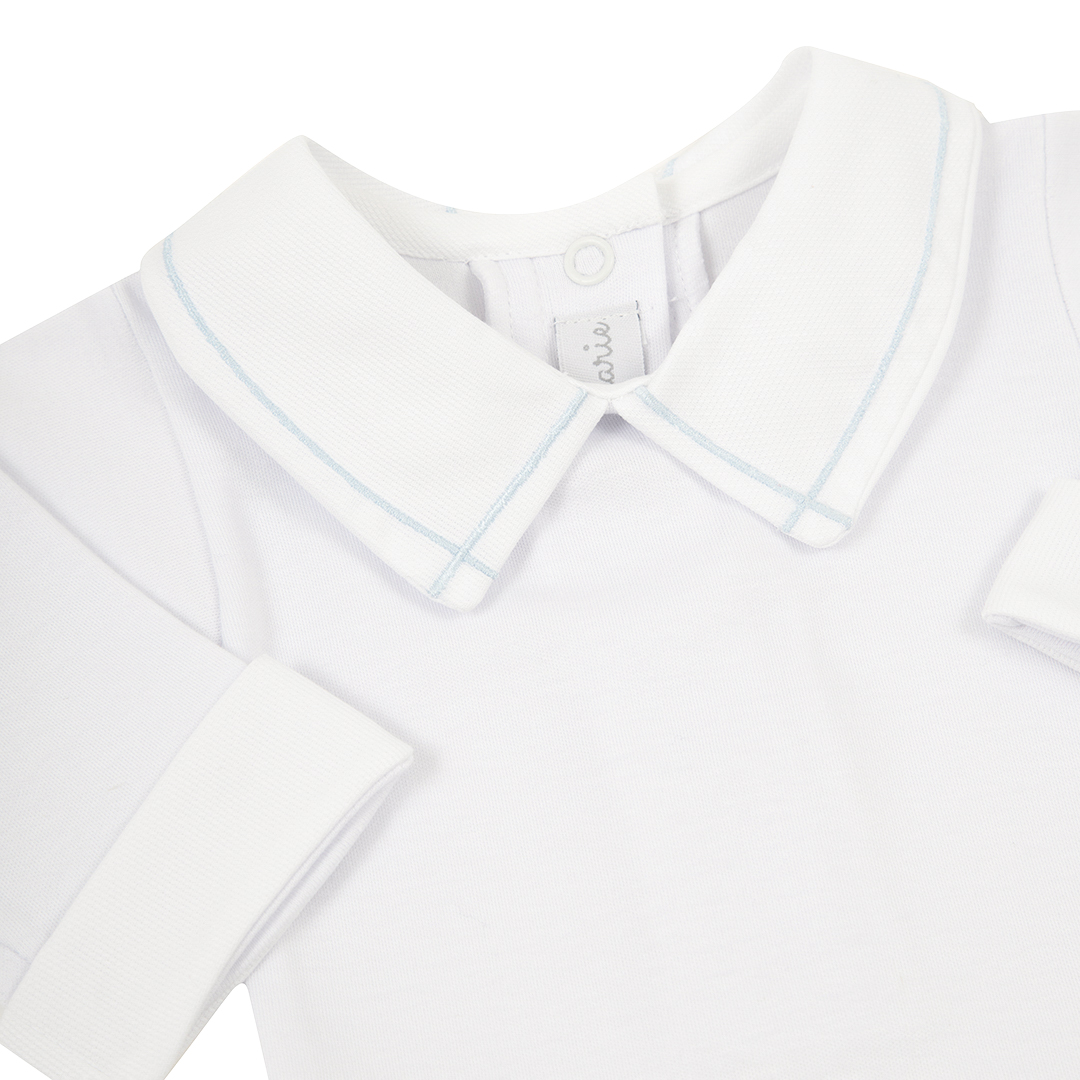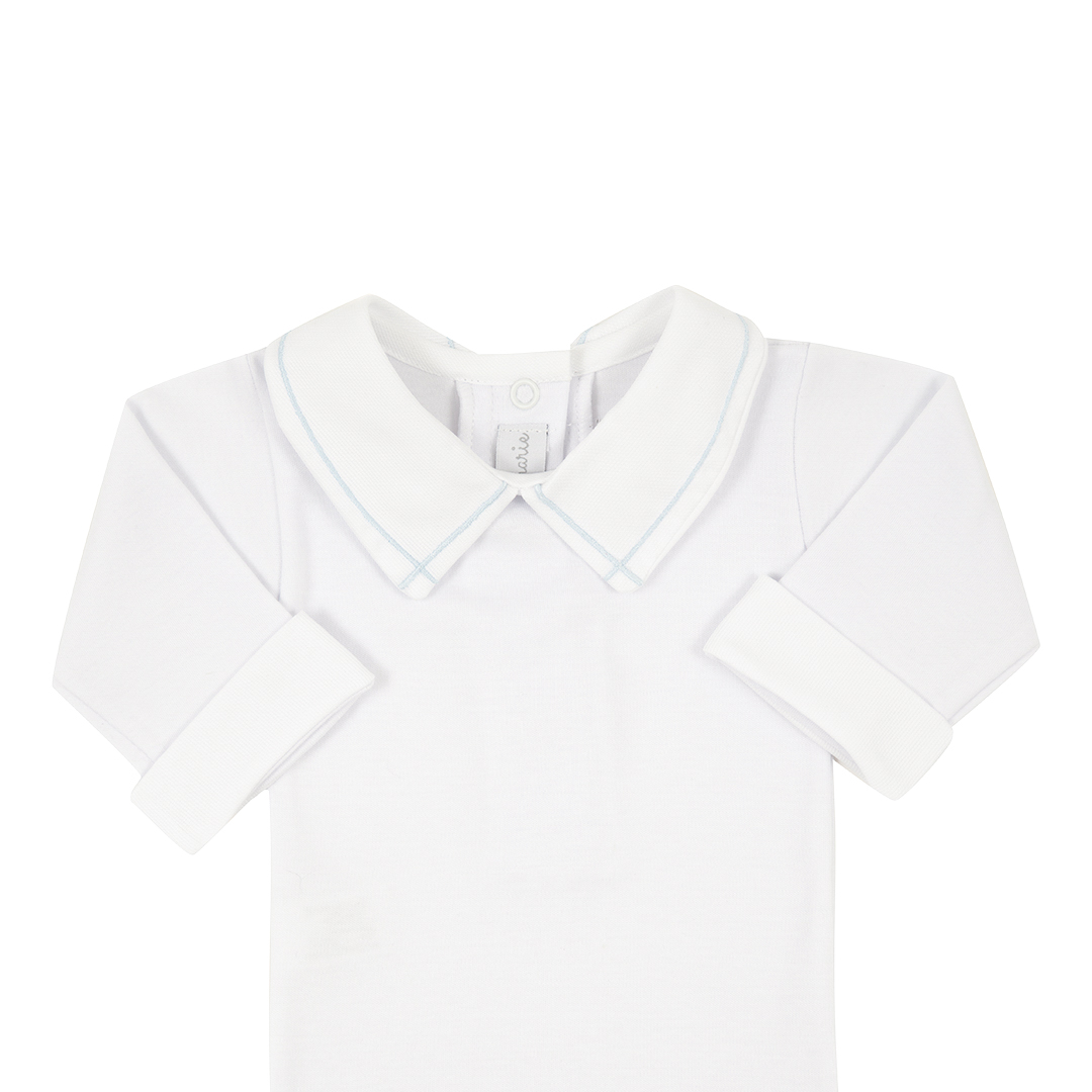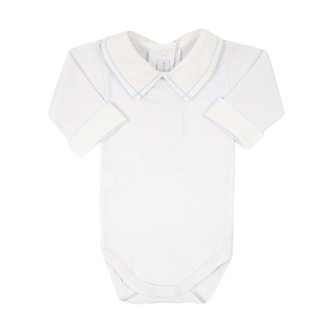 O Body Jorge Azul Bebê é uma peça clássica e sofisticada, ideal para compor o enxoval do seu bebê. Confeccionado em malha 100% algodão, é extremamente macio e confortável, perfeito para todas as estações do ano.