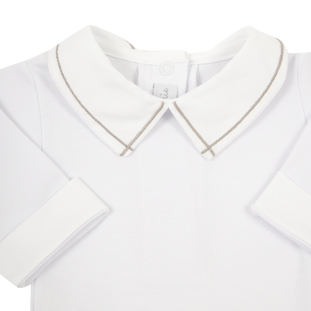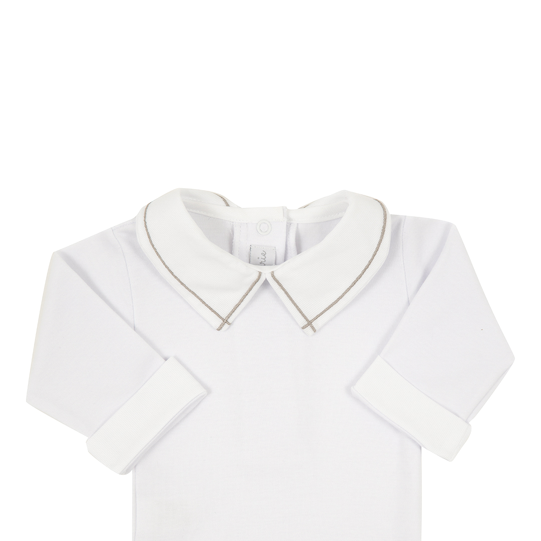 O Body Jorge Cinza é uma peça clássica e sofisticada, ideal para compor o enxoval do seu bebê. Confeccionado em suedine 100% algodão, é extremamente macio e confortável, perfeito para todas as estações do ano.