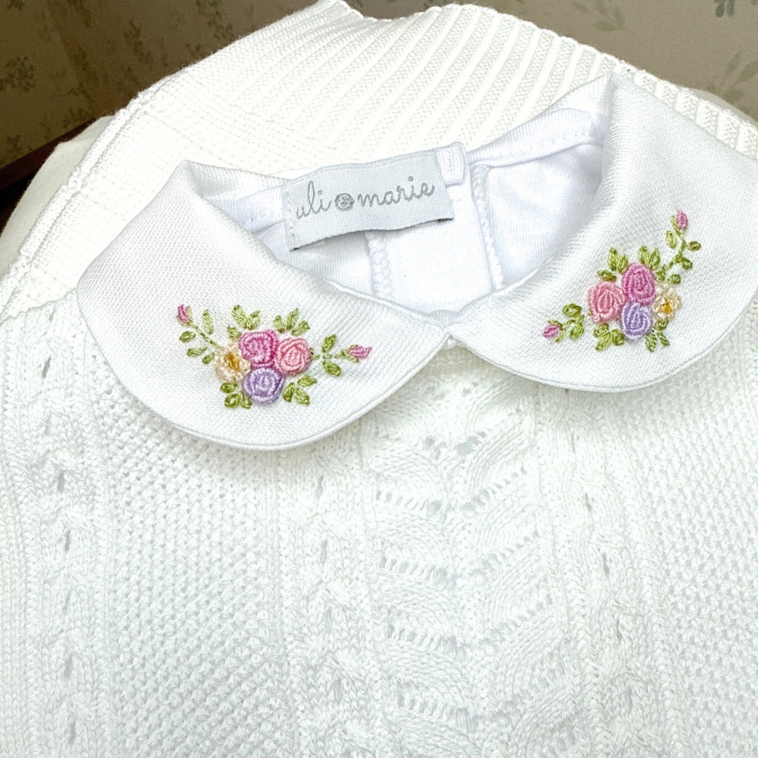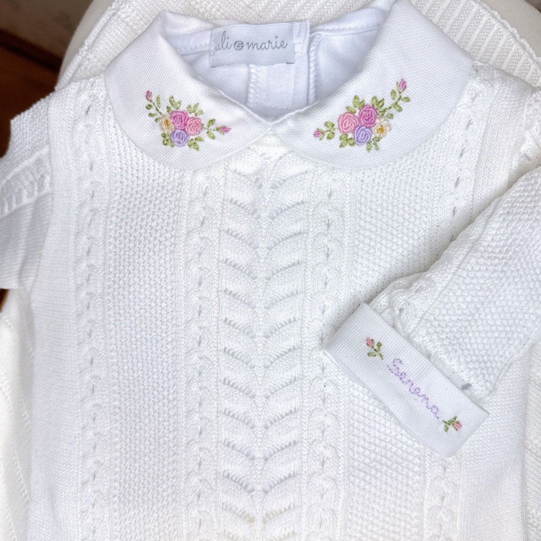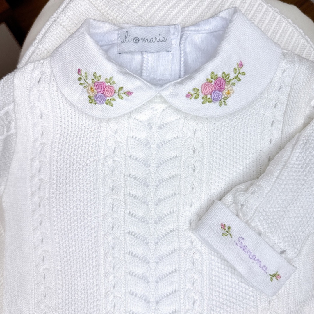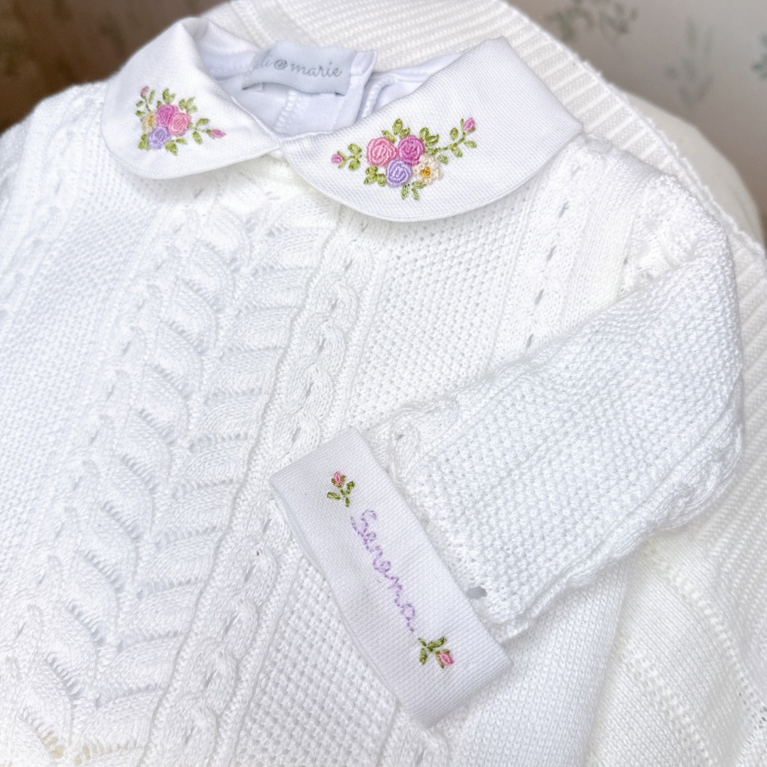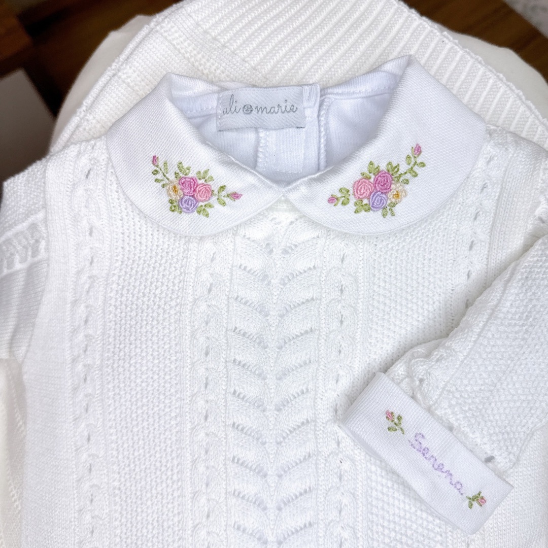 O Body Maria é uma peça delicada e exclusiva, confeccionada em Suedine 100% para proporcionar máximo conforto ao seu bebê. Com bordado floral artesanal em tons de lilás, rosa bebê, rosa antigo, verde e off-white, ele se destaca pelo acabamento refinado e pela personalização especial com o nome da bebê bordado no punho.