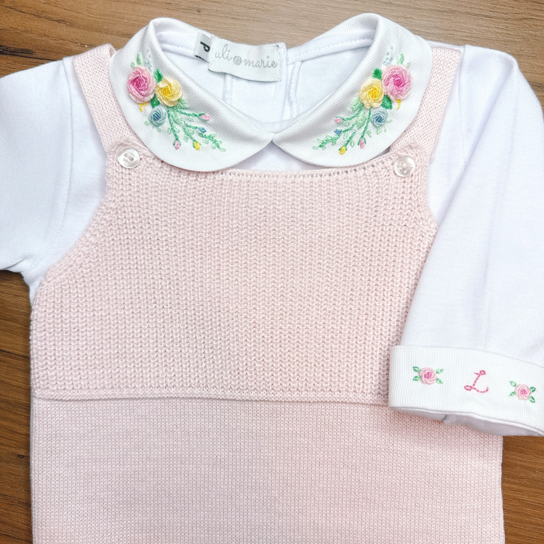 Jardineira e Casaquinho Manu Rosa bebê – 2 peças