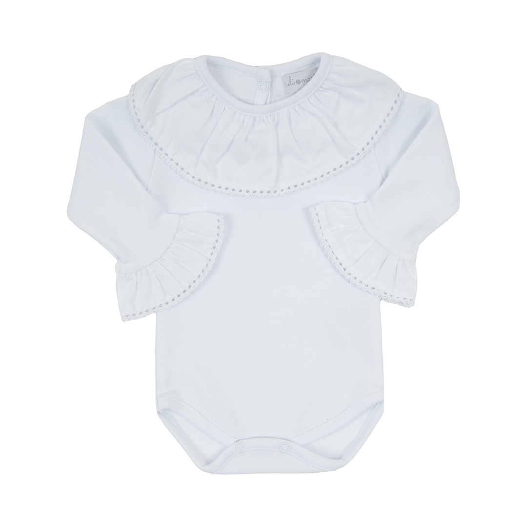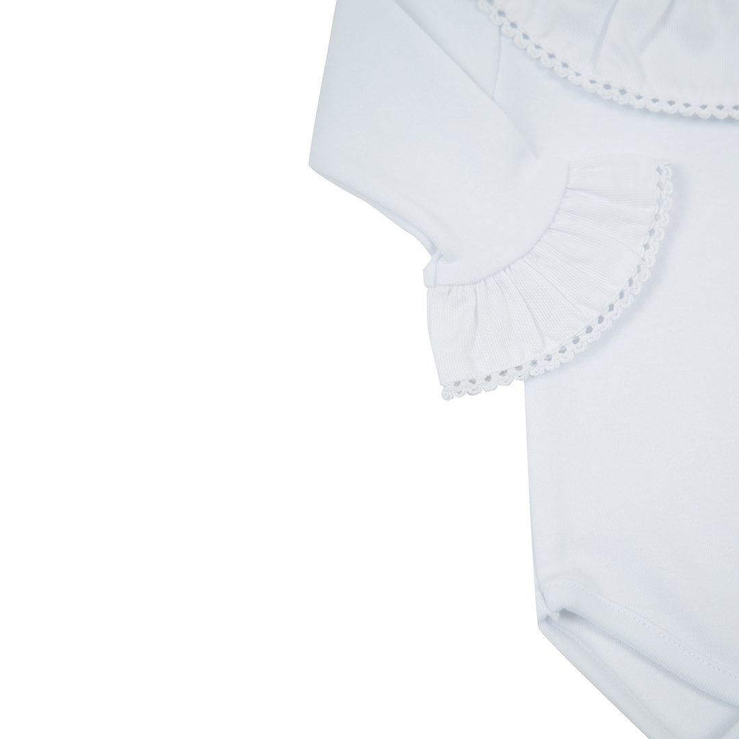 O Body Megan é a escolha perfeita para mamães que buscam um visual clássico e sofisticado para o bebê. Confeccionado em algodão egípcio ultra macio, proporciona um toque delicado à pele sensível do recém-nascido, garantindo máximo conforto durante todo o dia.