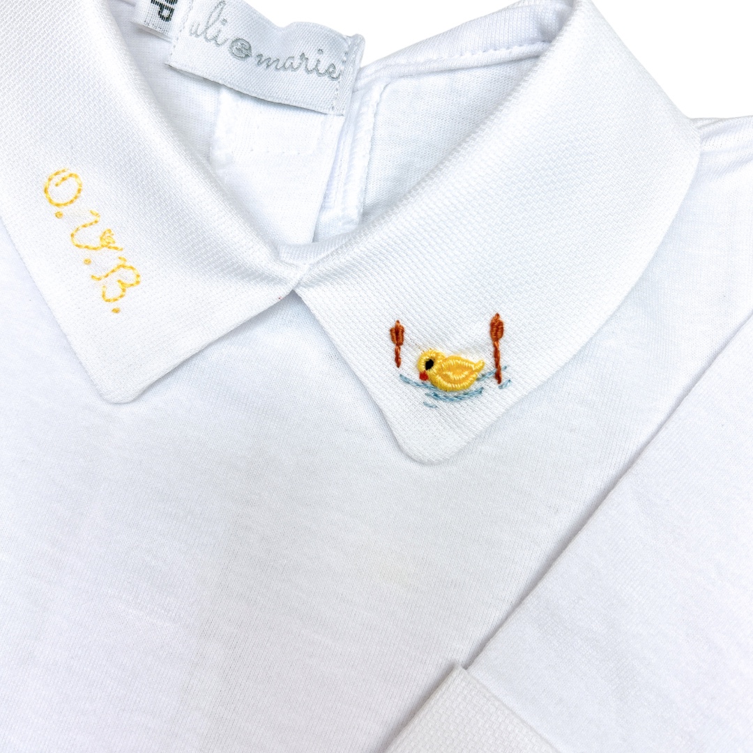 ✔ Acabamento impecável – Gola redonda bordada à mão, punho com acabamento reto e fechamento em velcro nas costas e botões de pressão na entreperna para facilitar a troca.