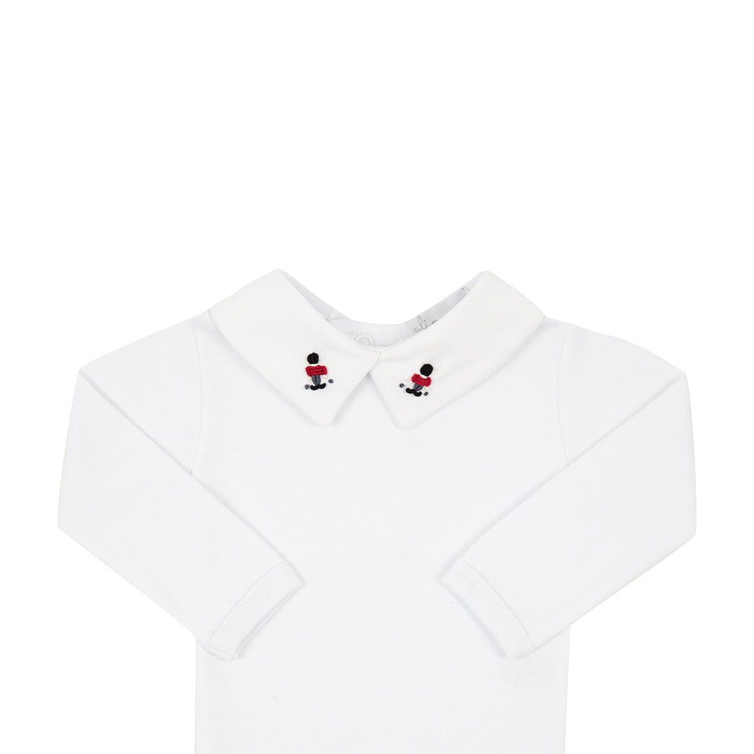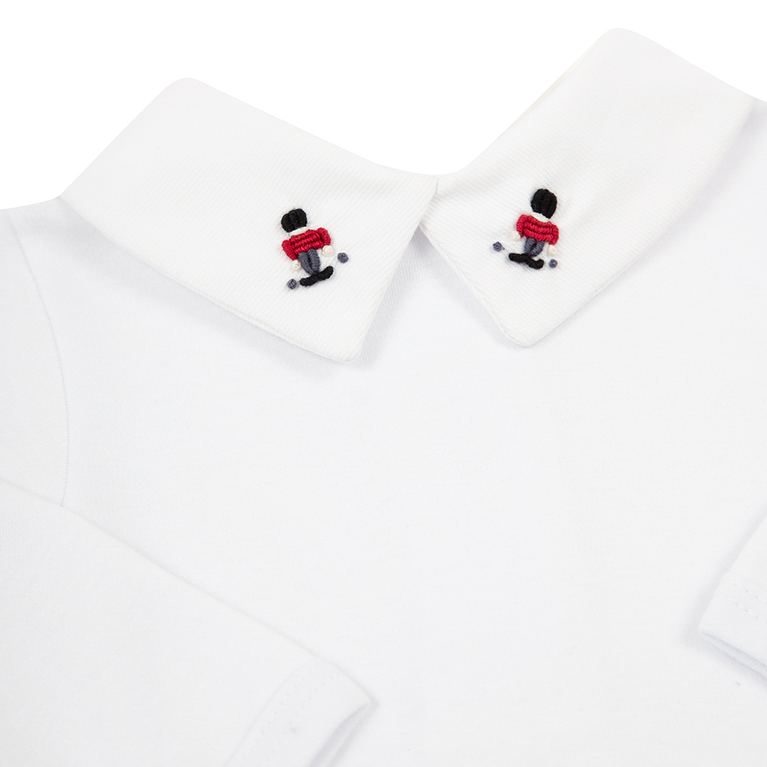 ✔ Gola reta com bordado à mão – um lindo soldadinho fofo bordado no rococó. Trabalho manual.