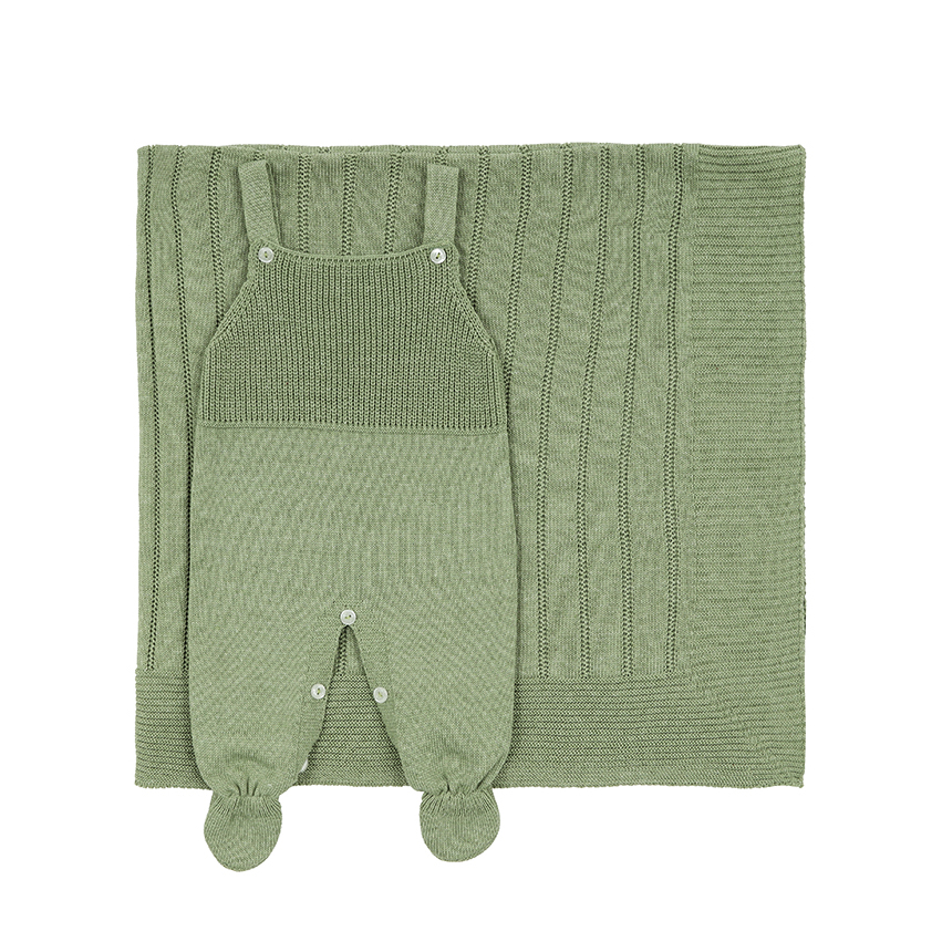 Saída Maternidade Bambu verde folha com Jardineira e Casaquinho – Uli&Marie
