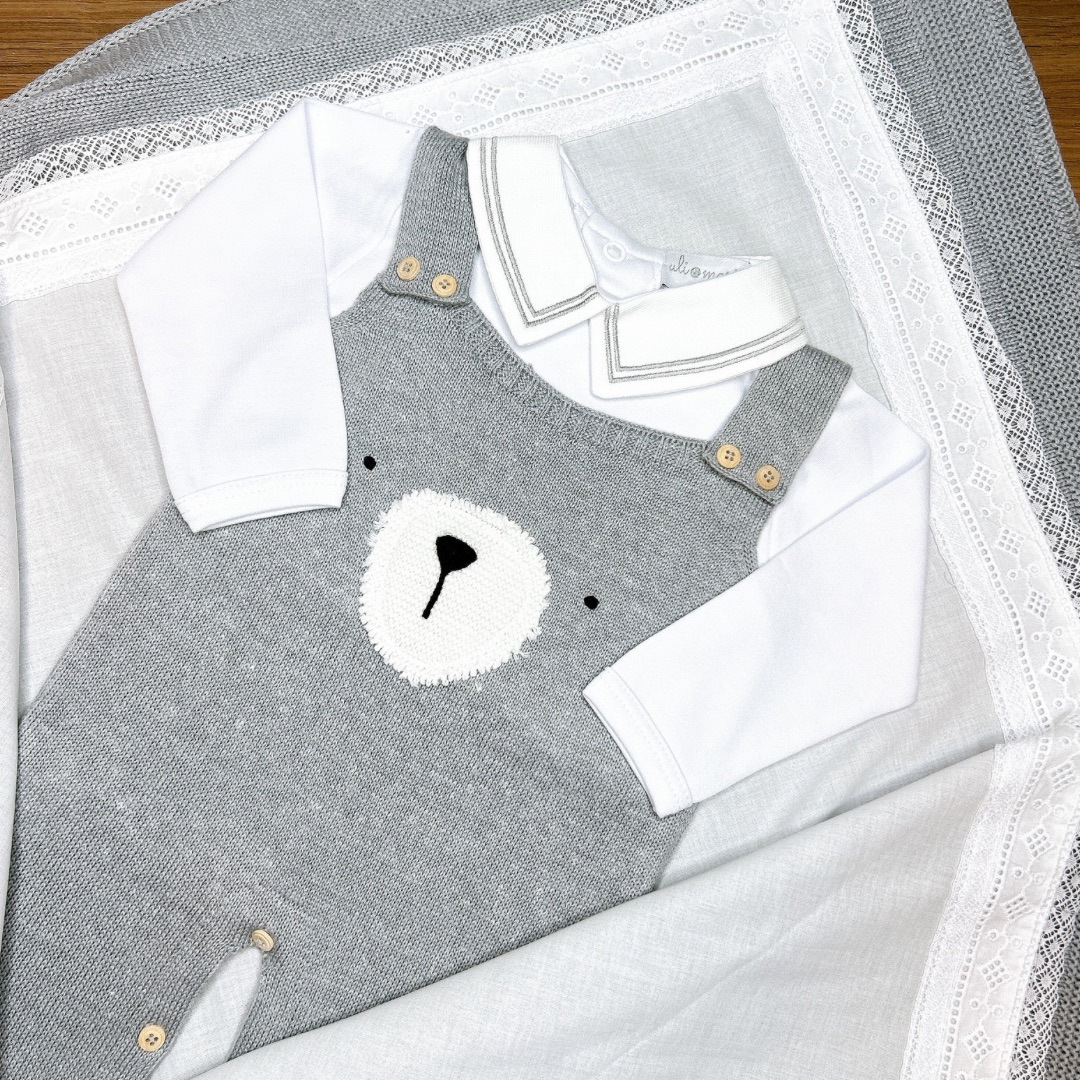 A Jardineira Teddy na cor Cinza é mais uma peça exclusiva do mix Uli&Marie, perfeita para a mala da maternidade e os primeiros passeios do bebê. Possui abotoamento nos ombros e no meio das perninhas, facilitando a troca e o manuseio.