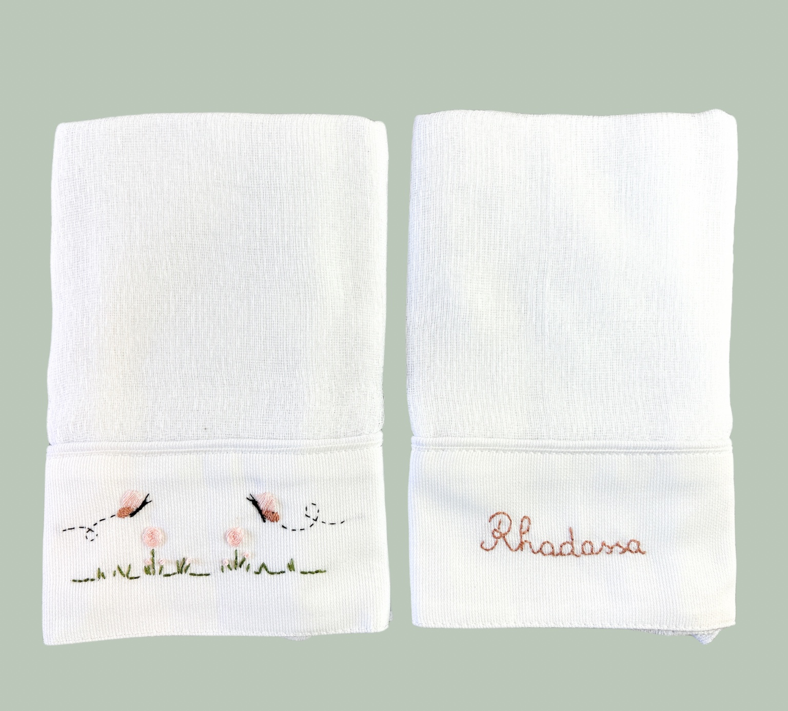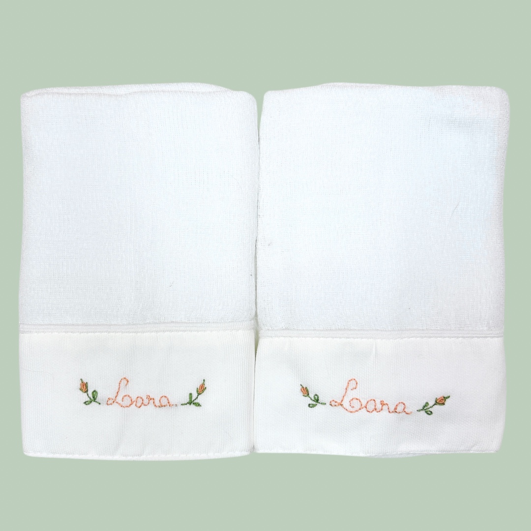 Nada mais prático do que ter fraldinhas sempre à mão. Quanto mais, melhor! Agora, você pode ter um kit exclusivo e personalizado com bordados feitos à mão.