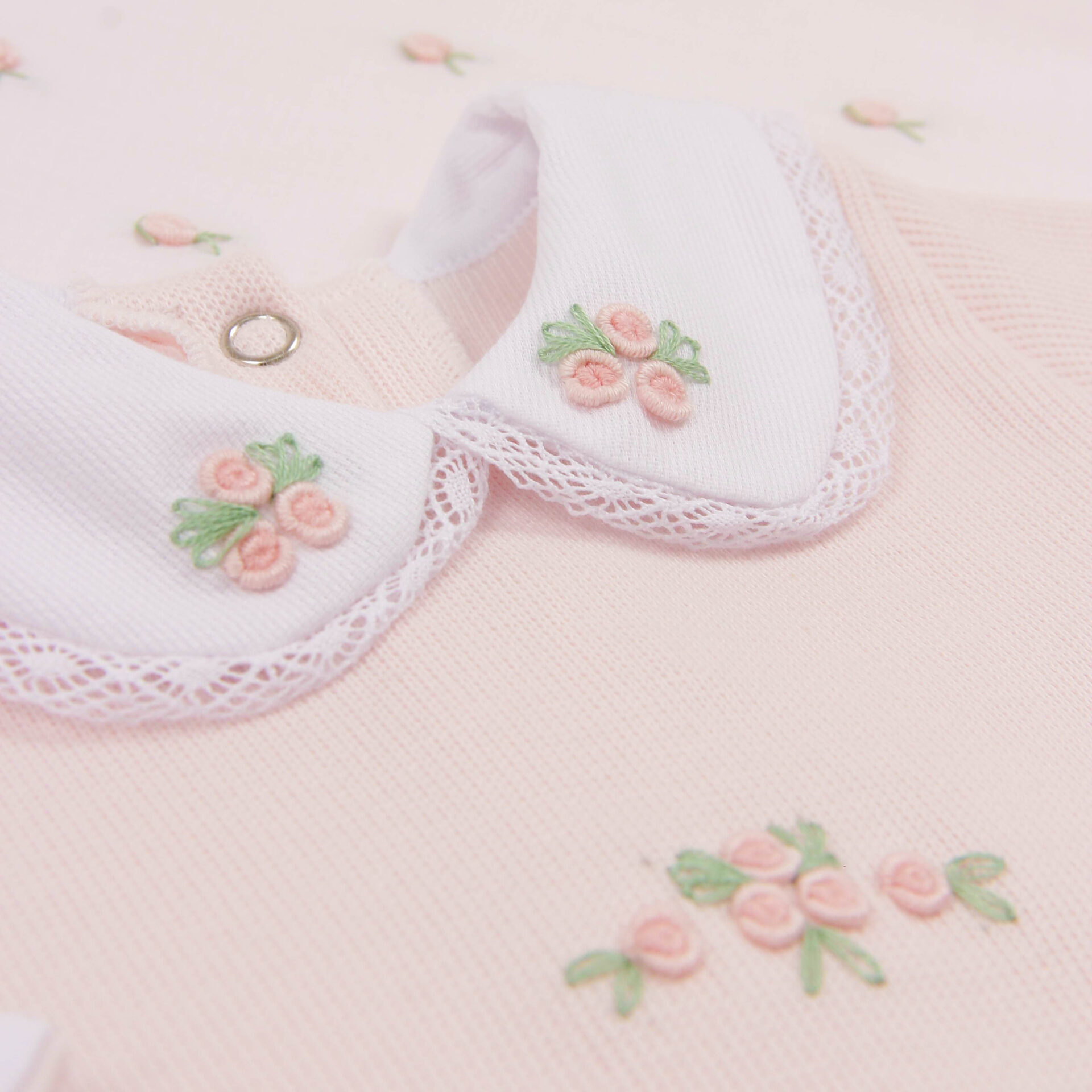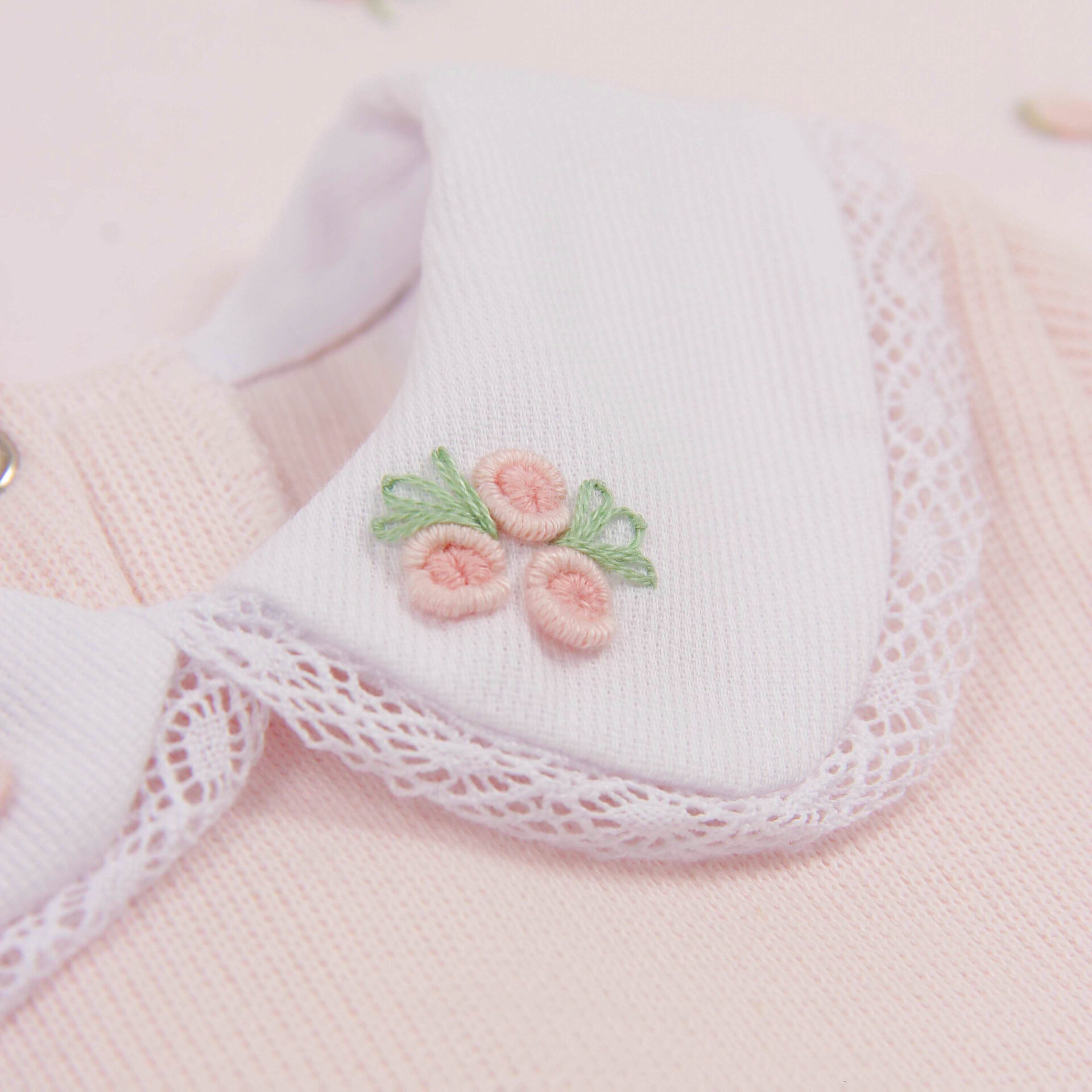 O Macacão Elisa na cor rosa bebê é a escolha perfeita para as mamães que buscam praticidade e elegância. Com uma gola fixa, ele dispensa o uso de body, proporcionando um visual leve e confortável para o recém-nascido.