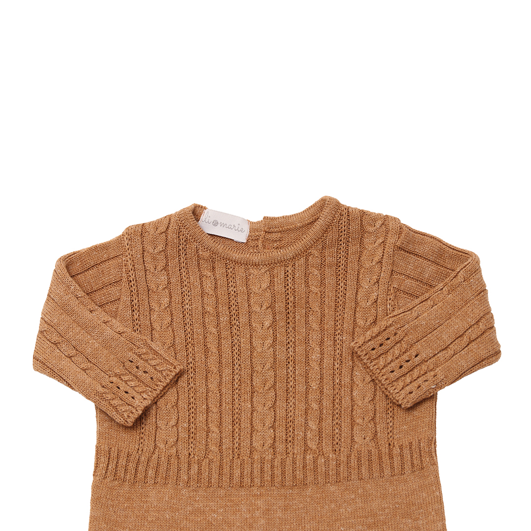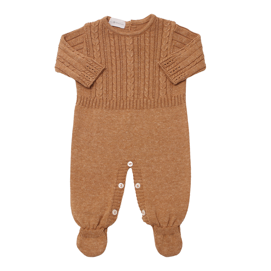 Macacão Tricot Lisboa Caramelo – Uli&Marie | Recém-nascido e P