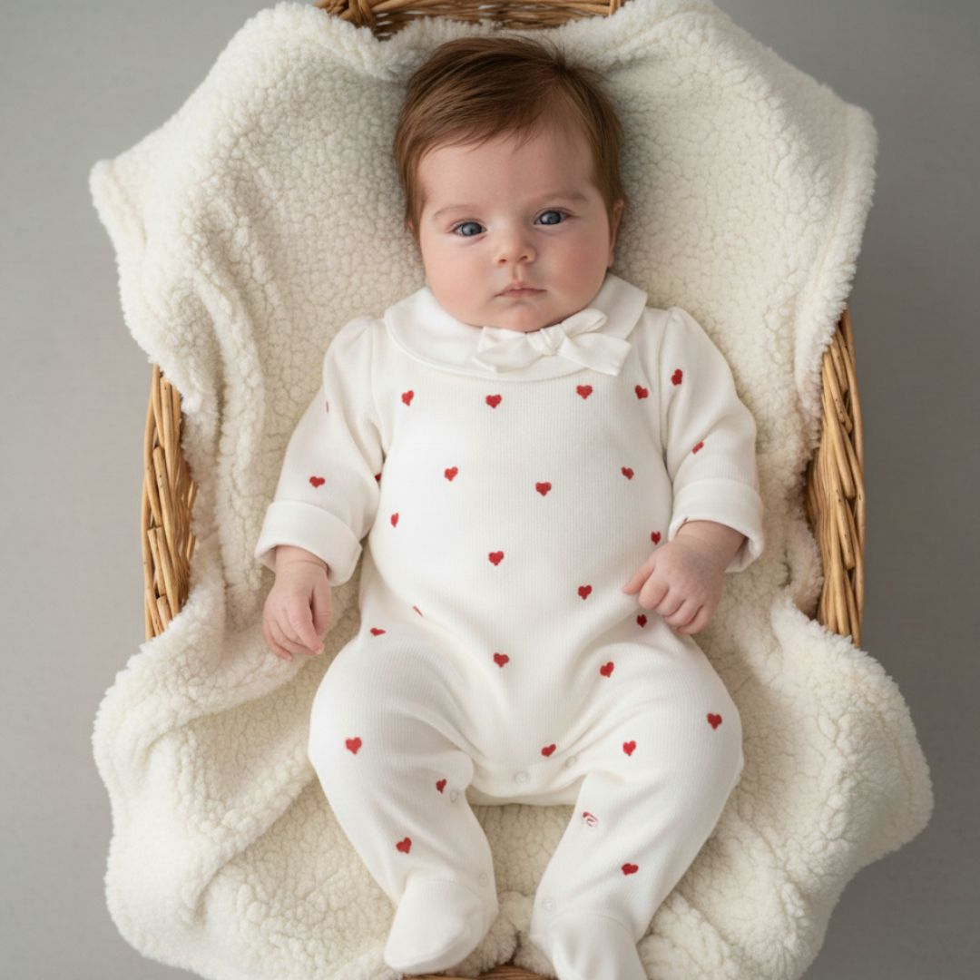 • Bordado fofo de mini corações, proporcionando um toque fofo e charmoso.