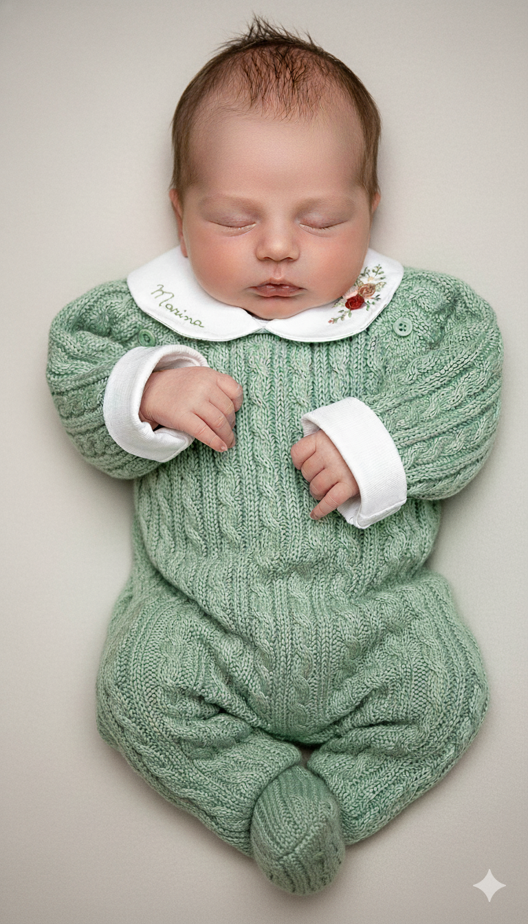 Confeccionado em tricot de linha Seridó (50% algodão / 50% acrílico), é uma peça extremamente macia, antialérgica e térmica, adaptando-se com suavidade à temperatura ideal para o bebê. Não utilizamos lã, garantindo maior segurança para a pele sensível dos recém-nascidos.