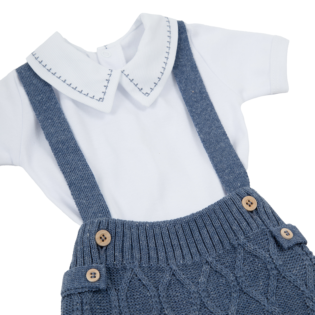 Com um tom sóbrio e moderno, o Romper Bento na cor azul jeans é a escolha ideal para os primeiros dias do bebê com muito conforto e estilo. O destaque da peça está no elegante tricot com acabamento delicado, acompanhado de um body em suedine 100% algodão que completa o look com suavidade.