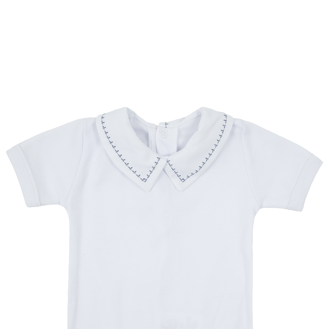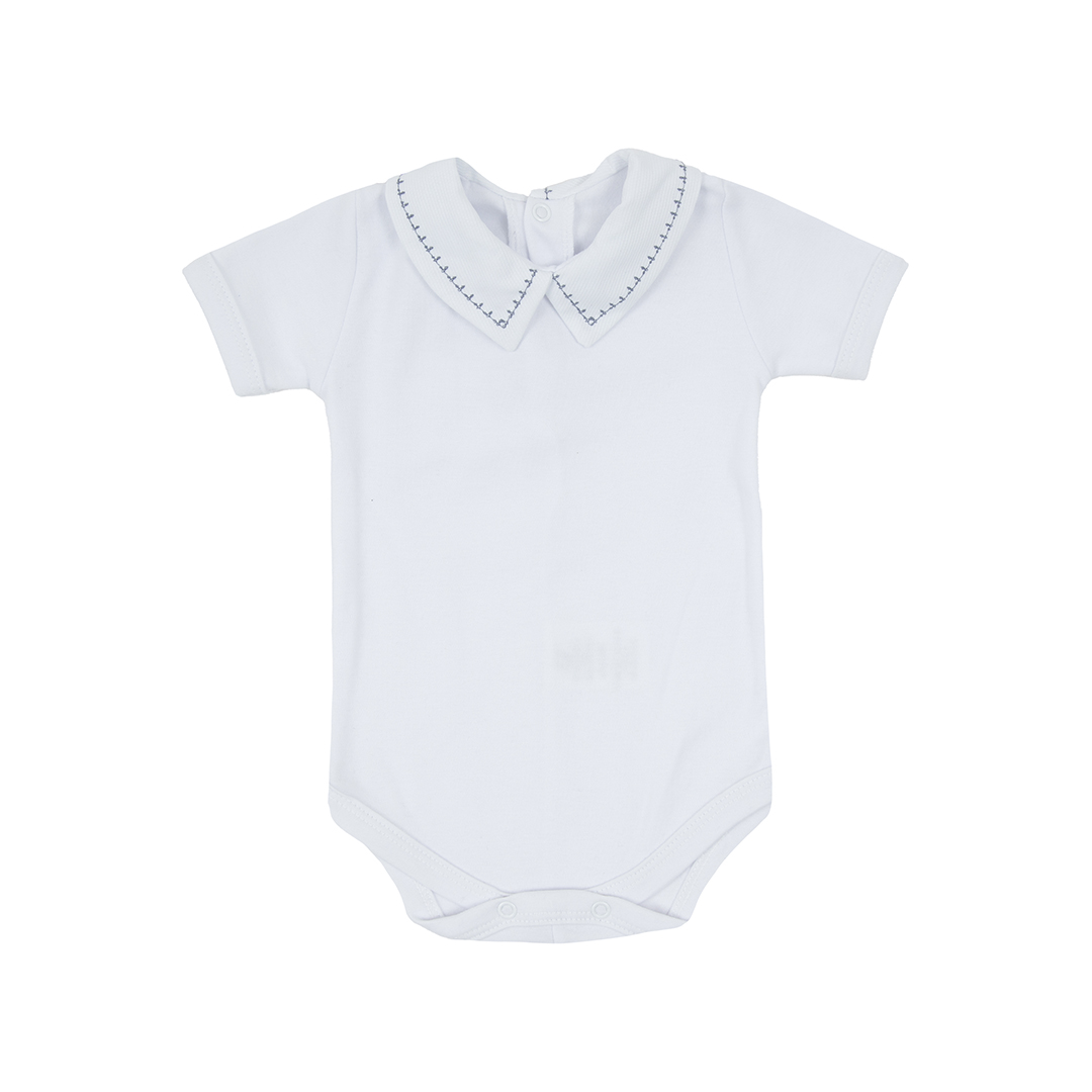 O romper conta com botões nos ombros e nas laterais do quadril, pensados para facilitar a troca de fraldas e vestir o bebê com praticidade. A gola reta do body adiciona um toque clássico e atemporal.
