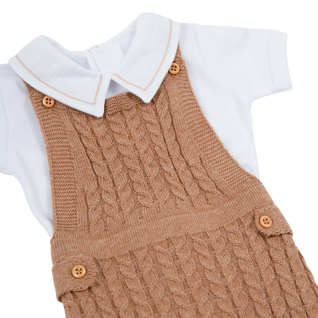 O Romper Pedro com body na cor caramelo sintetiza todo o amor e carinho que o seu menino merece para esse momento tão especial! Confeccionado em tricot de alta qualidade, proporciona o máximo de aconchego para o pequeno, com um visual encantador.