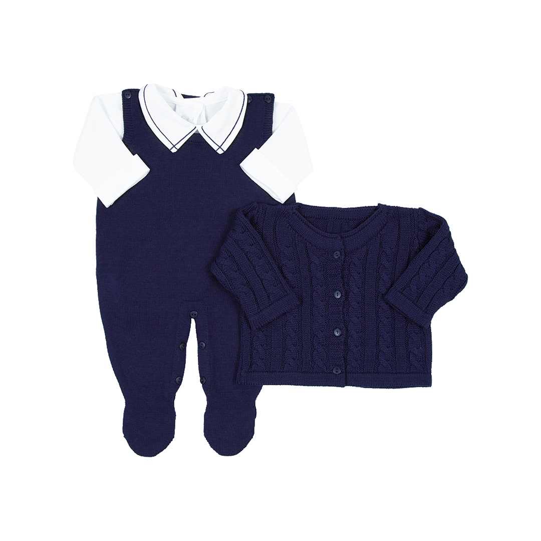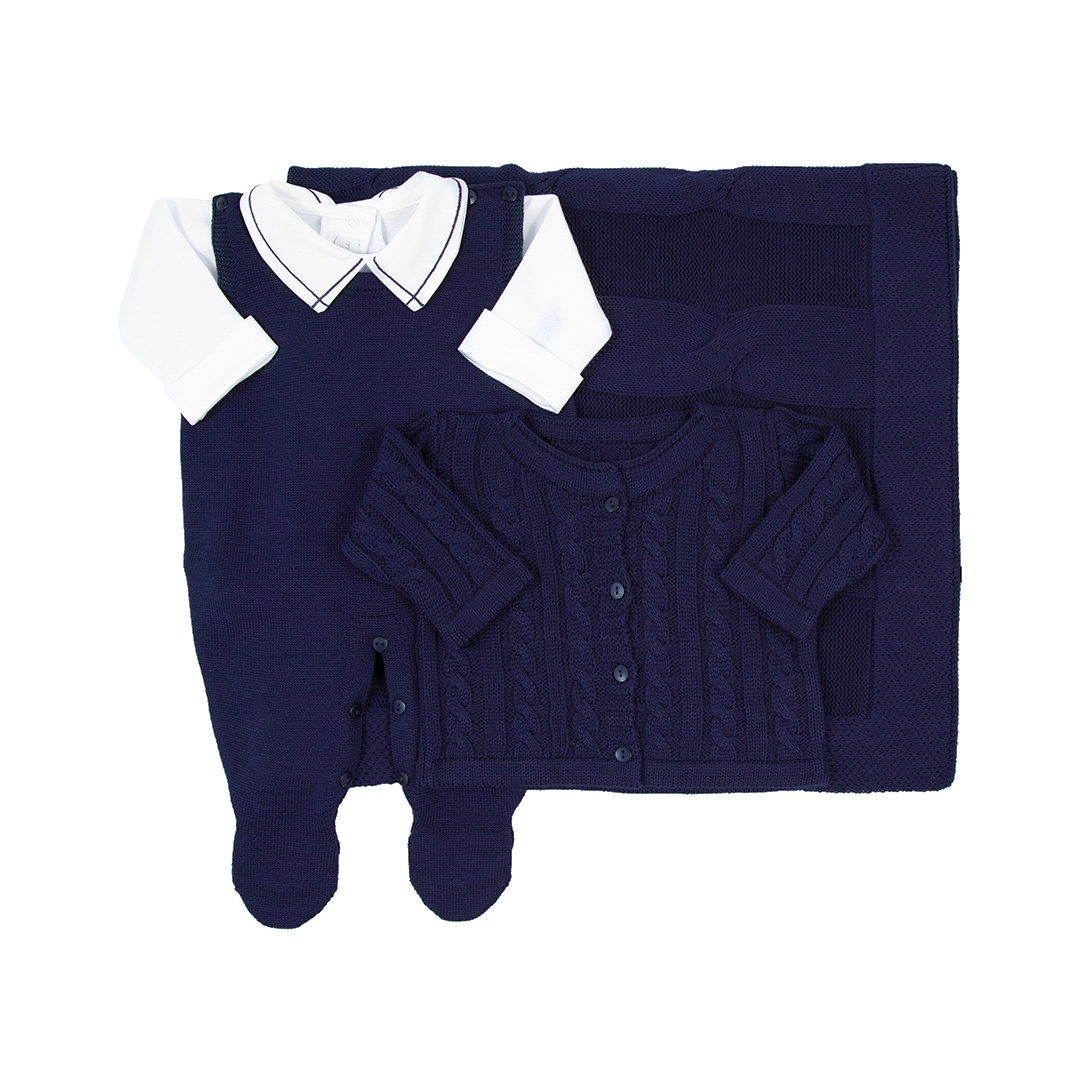 Com um design clássico e detalhes delicados, este conjunto é perfeito para a mala da maternidade, garantindo que o bebê esteja confortável e elegante nas primeiras fotos e visitas.