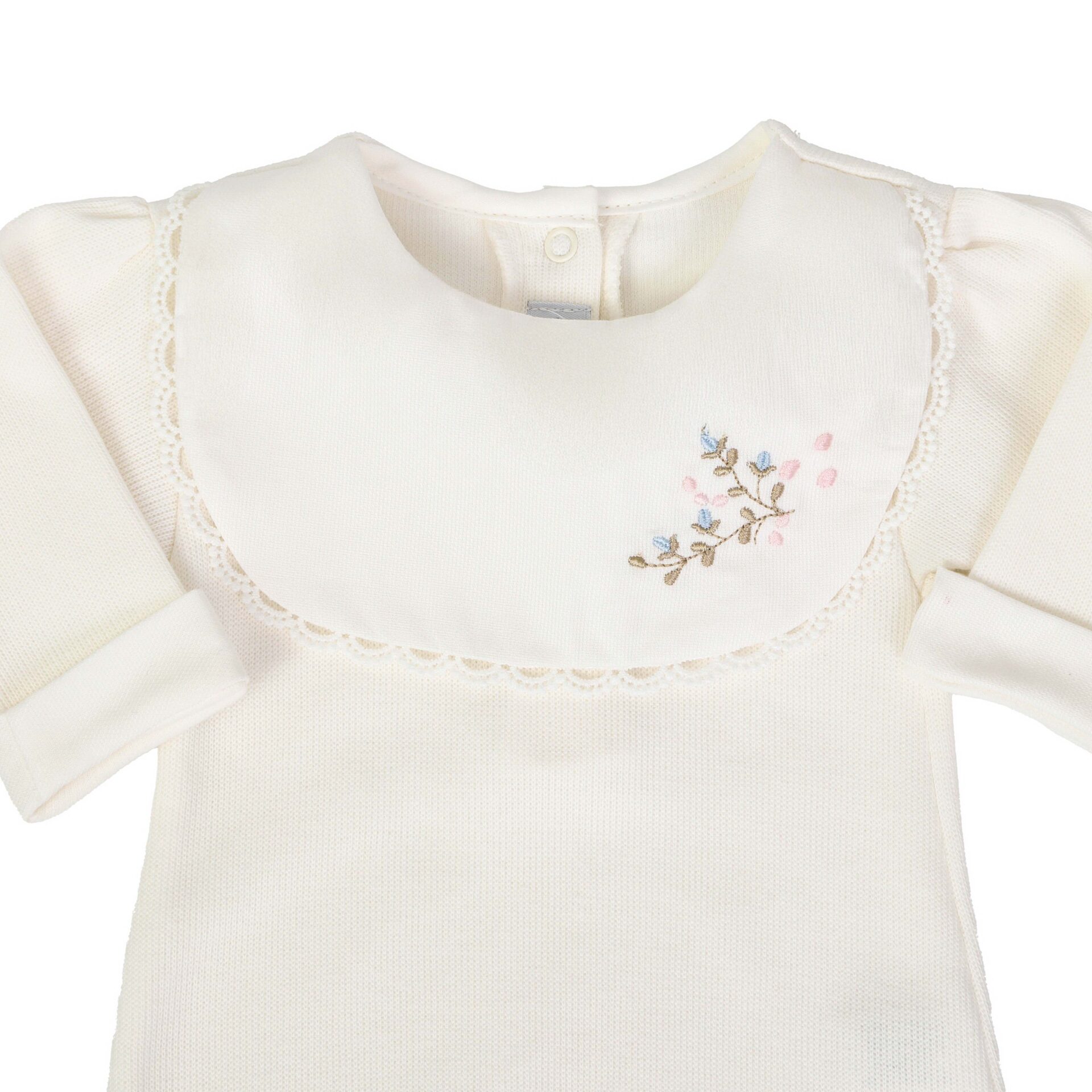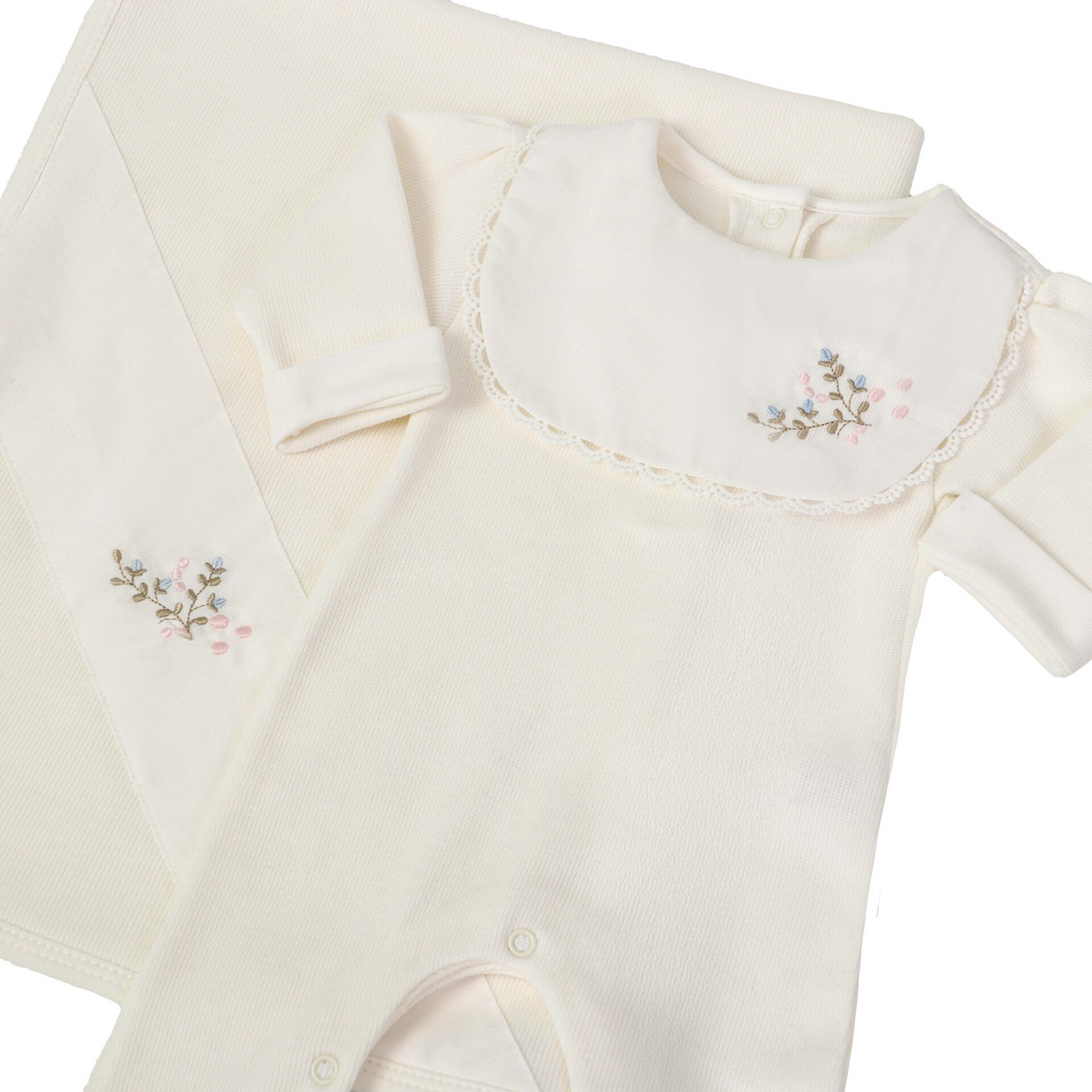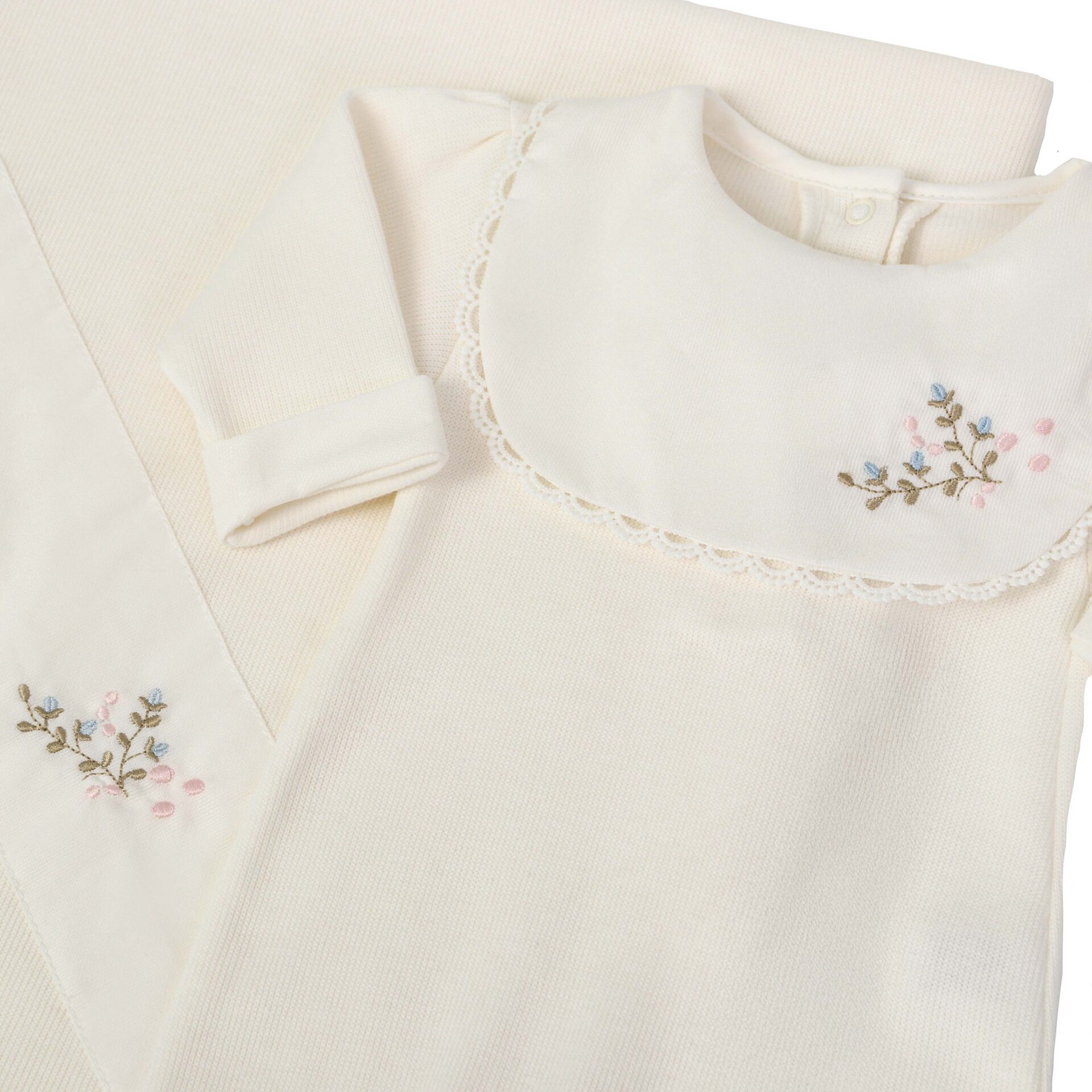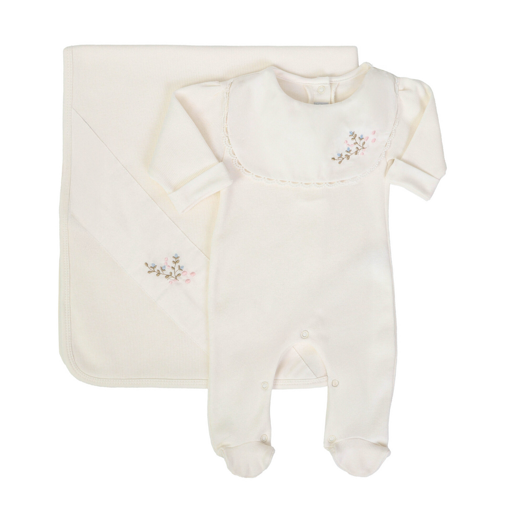 A Saída Maternidade Laura da Uli&Marie é perfeita para os primeiros momentos da sua bebê. Composta por um macacão com pala fixa bordada e uma manta bordada no mesmo tema, essa peça une conforto, sofisticação e praticidade.