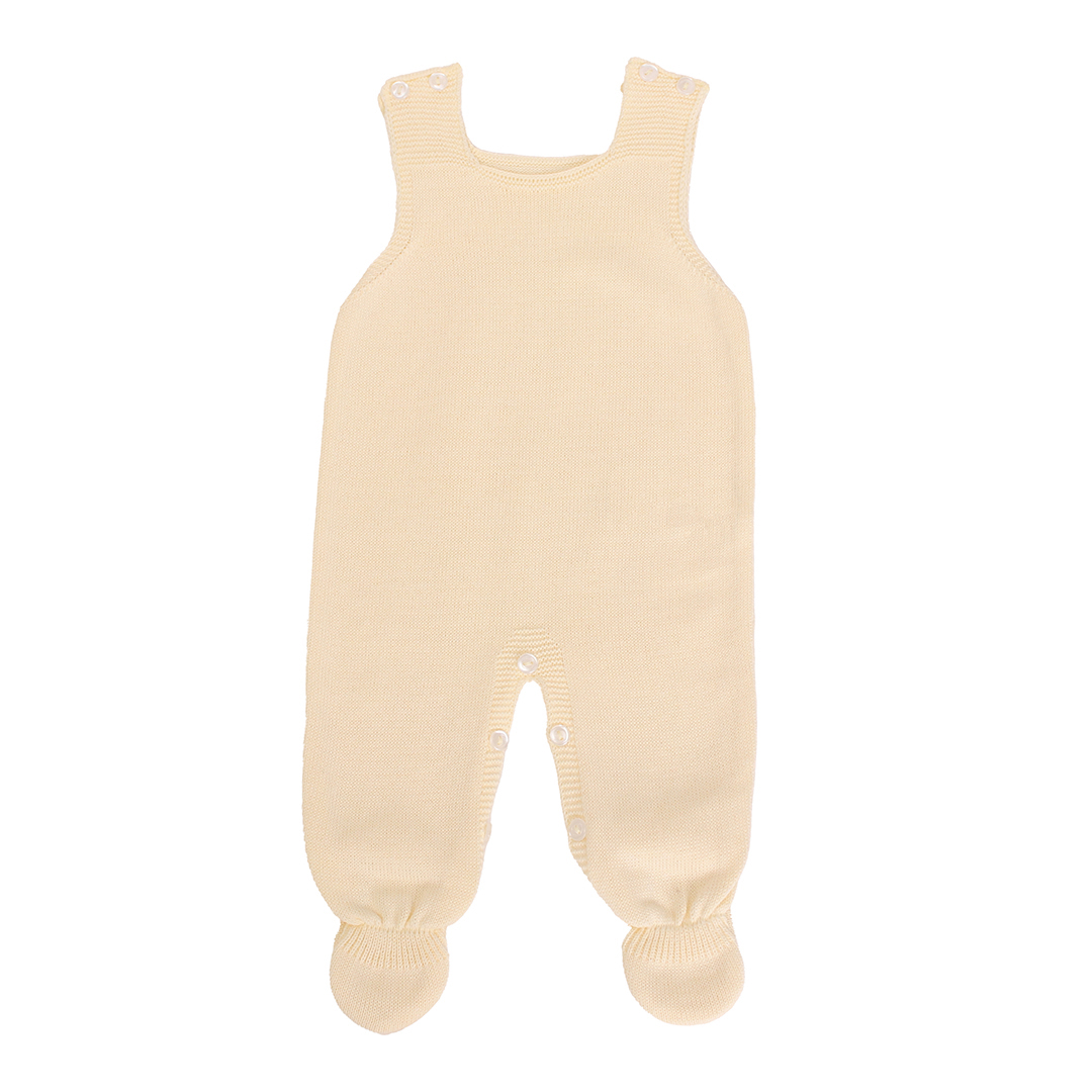 A jardineira possui abotoamento entre as perninhas e nos ombros para facilitar as trocas. O casaquinho e a manta apresentam o mesmo trabalho artesanal em tricot no ponto pipoca, criando um conjunto harmônico e delicado. Um kit perfeito para todas as estações: com o casaquinho para ambientes climatizados e apenas a jardineira em locais mais quentes.
