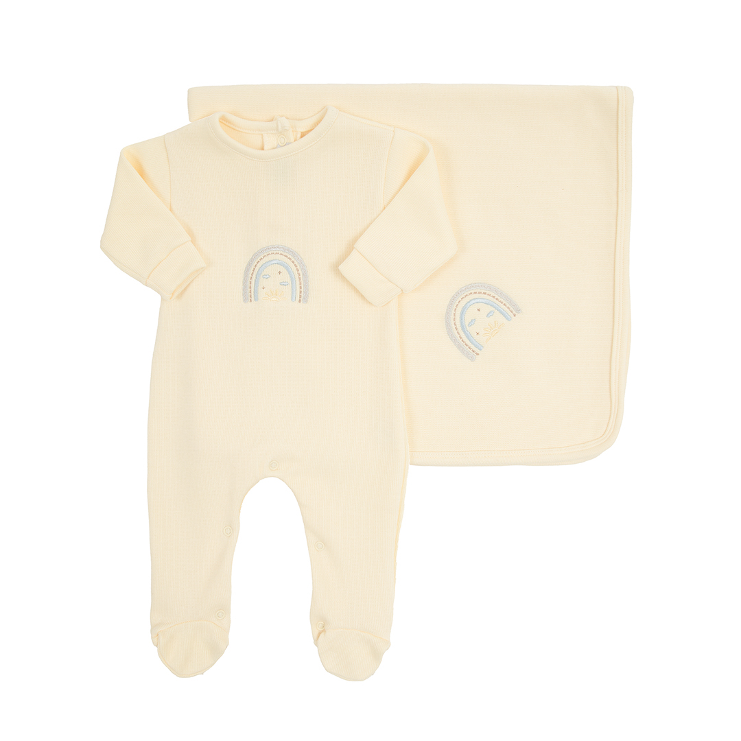 ✔ Conjunto com 2 peças: Macacão bordado + Manta bordada combinando.
