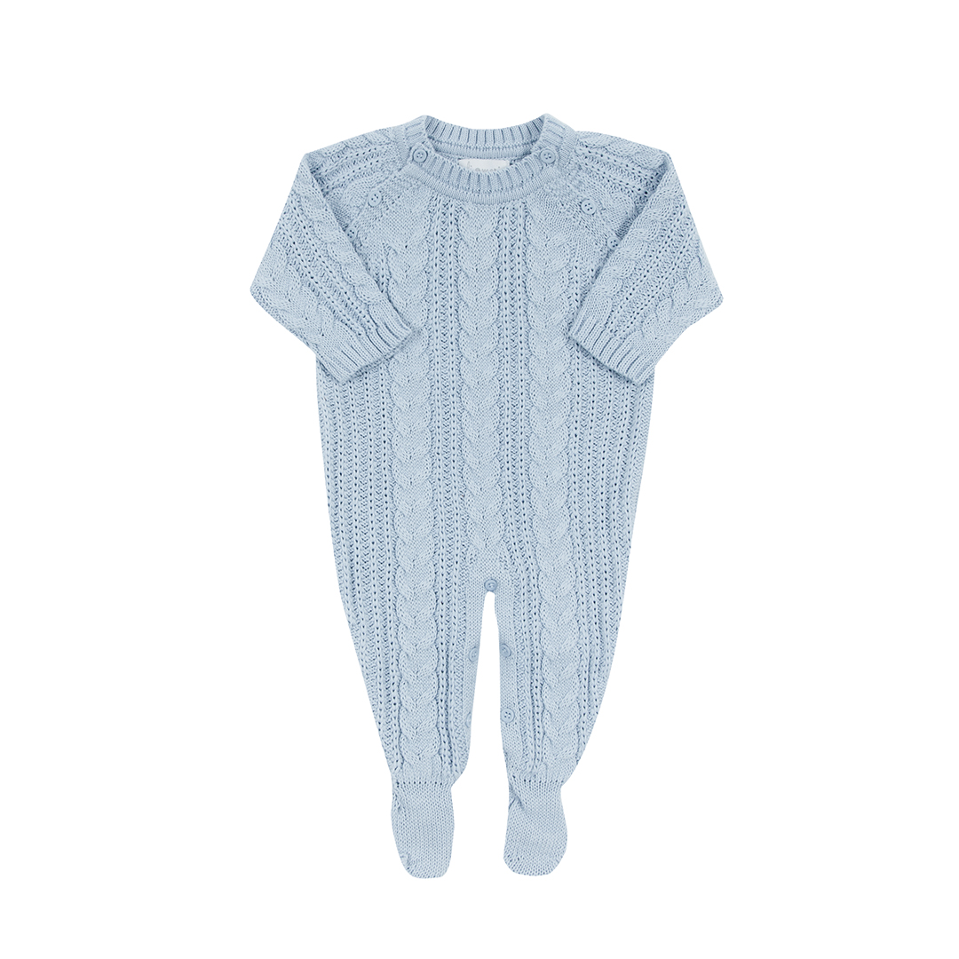 A Saída Maternidade Sorrento na cor Azul Bebê é um dos itens mais queridos do mix Uli&Marie. O conjunto conta com um macacão em tricot com lindas tranças na própria trama e uma manta coordenada no mesmo padrão, garantindo harmonia e sofisticação ao enxoval.