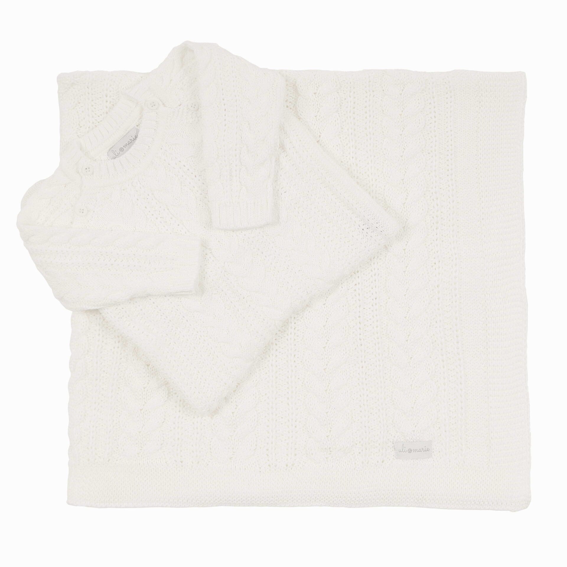 ✔ Manta combinando – possui a mesma trama trançada do macacão, garantindo um visual harmonioso