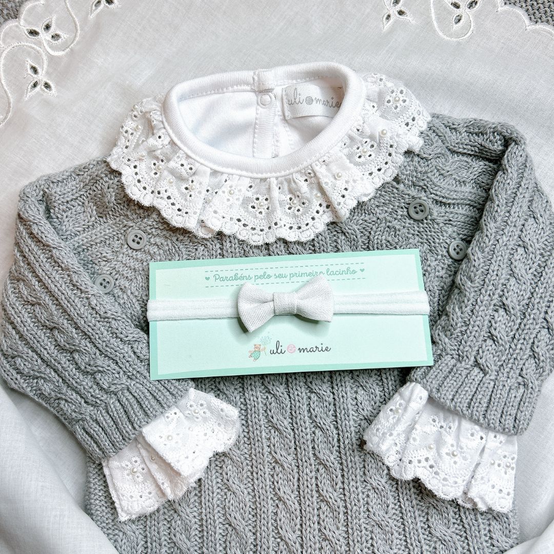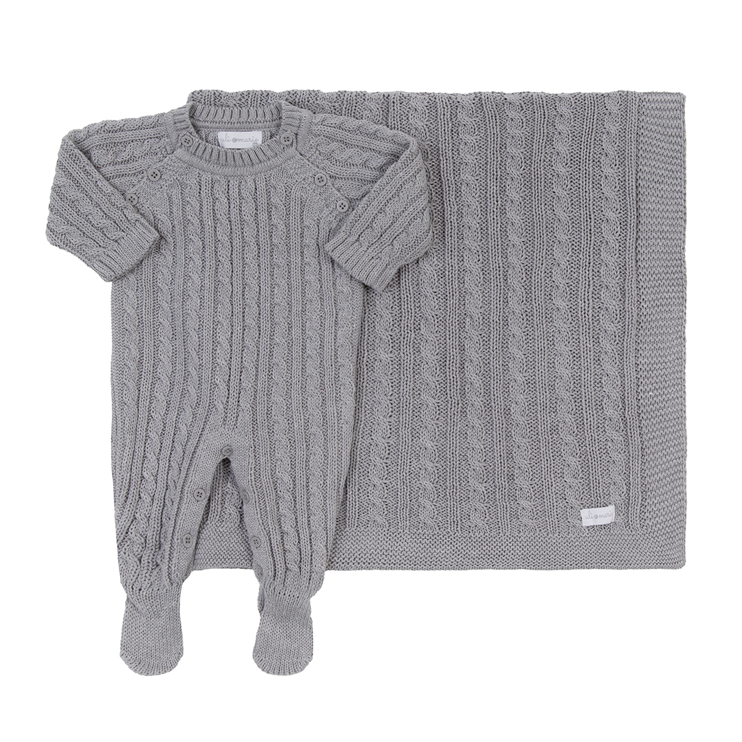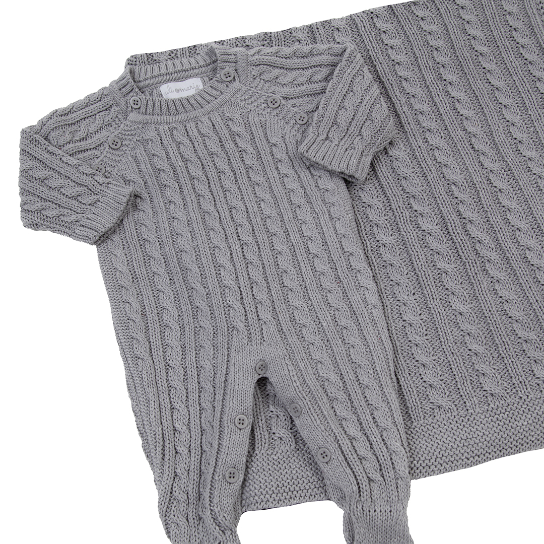 A Saída Maternidade Uli é uma peça encantadora do mix Uli&Marie, perfeita para compor a mala da maternidade e para os primeiros passeios do bebê. O kit inclui o macacão com abotoamento nos ombros e entre as perninhas — ideal para facilitar a troca — e acompanha uma manta com o mesmo desenho de trança do macacão, garantindo harmonia no visual.